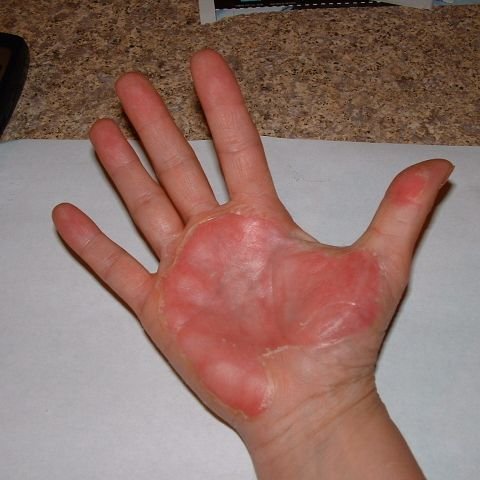 Joanne severely burned her hand on a hot stovepipe and here are the results.