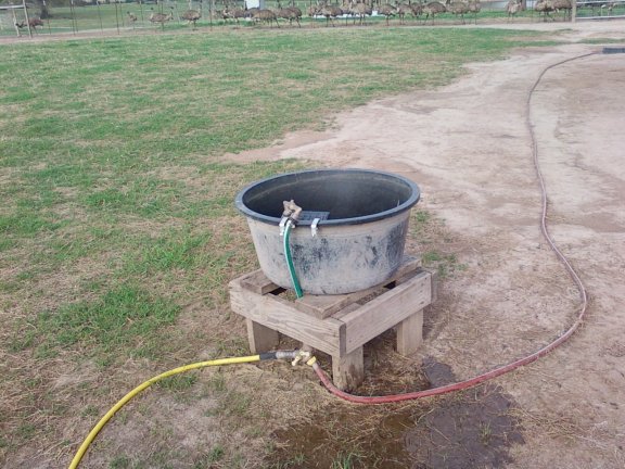 A water system with a backup is an absolute necessity for an emu ranch of any size.